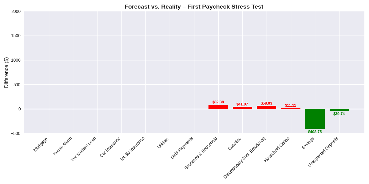 Post #4 Forecast vs. Reality — The First Paycheck Stress Test